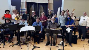The Kehilla Klezmer Band features members of Kehilla Community Synagogue of Piedmont (right on the border with Oakland) but is open to non-members, California. Members of Saul Goodman’s Klezmer Band have been collaborating with Kehilla since 2017. The collaboration culminates each year with a Simkhes Toyre dance party.